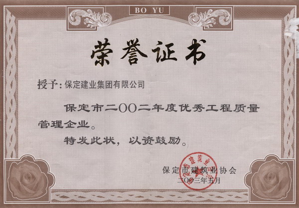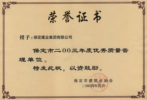 市03優(yōu)秀工程質(zhì)量管理