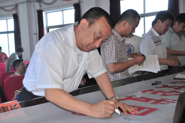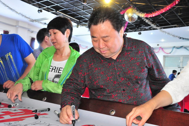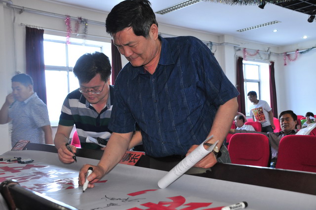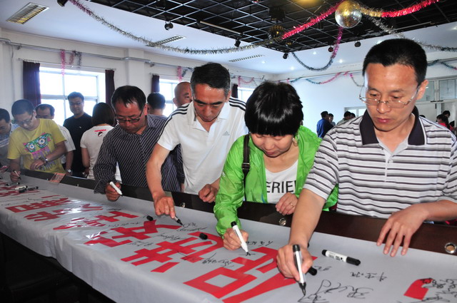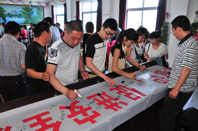 參會人員在“強化紅線意識,促進安全發(fā)展,落實安全規(guī)章”條幅上簽字。